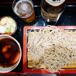 冷肉そば850円、大盛(1.5玉)150円、げそ野菜天セット300円
